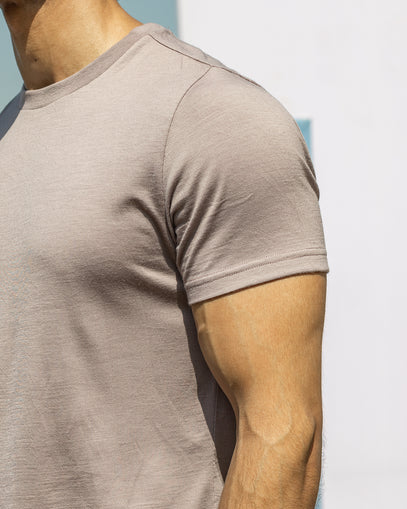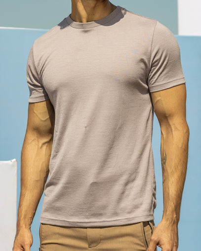 A Merino Wool Crew Neck T-shirt is a premium tee made from ultra-fine Merino wool 17.5 Micron fibers, offering natural softness, breathability, temperature regulation, and odor resistance. It's perfect for both everyday wear and travel.